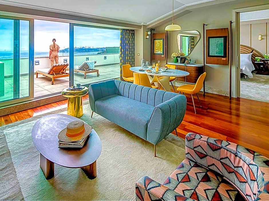 Featuring Bosphorus view, this suite has a balcony, mini-bar and air conditioning. This room has a 40" LCD TV, espresso machine, desk, safety box and a sofa. Private bathroom has a shower and a hairdryer.