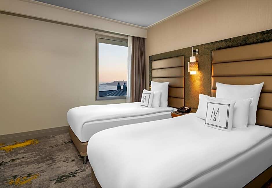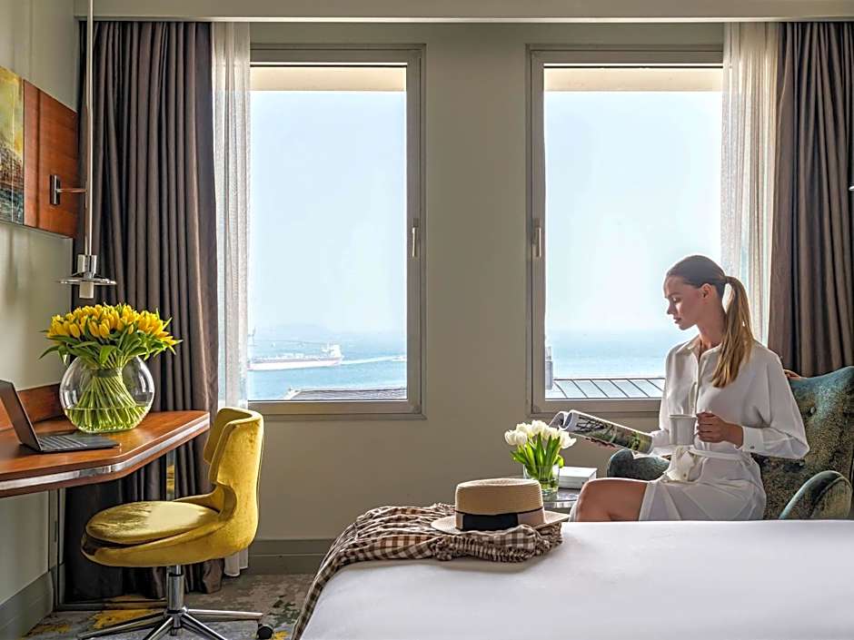 Featuring Bosphorus view, this deluxe room has a 40" LCD TV, mini-bar, espresso machine, work desk, safety box. Private bathroom has a shower and a hairdryer.